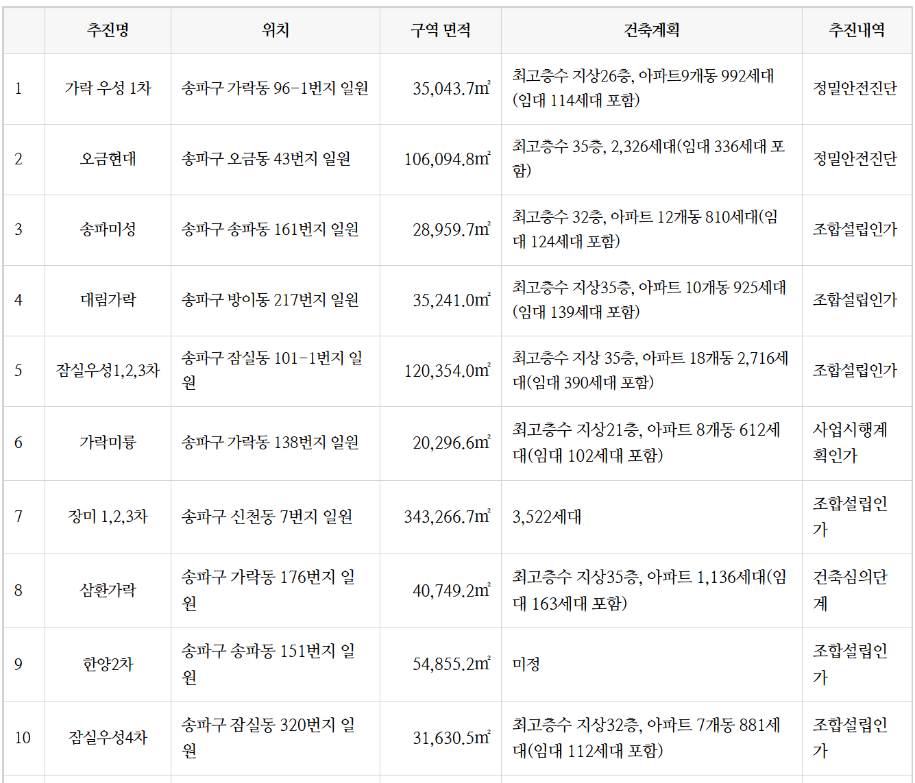 현재 송파구는 모아 타운과 재개발, 재건축 등 이 활발히 이루어지고 있습니다.