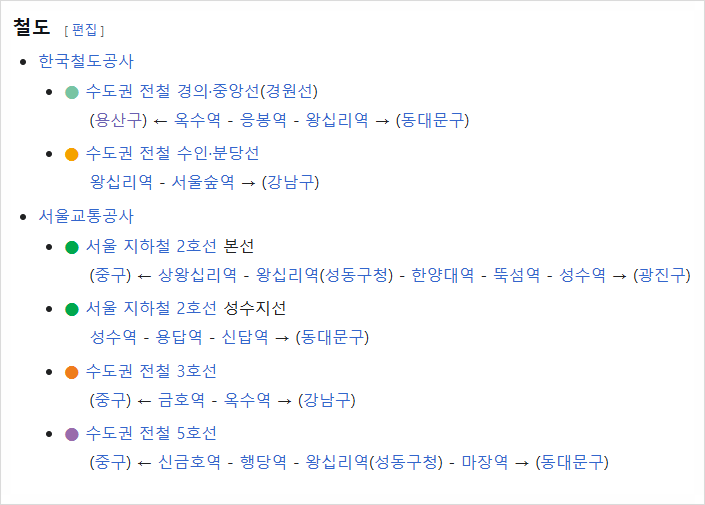 또한 4개 이상의 지하철 노선이 지나가는 교통의 허브 역할을 하고 있는 '왕십리역' 이 있기에 서울 지역 어디든 쉽게 닿을 수 있습니다.
