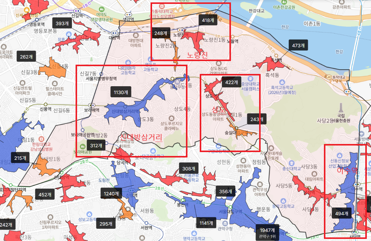 동작구는 특히 흑석뉴타운, 사당동, 상도동 등지에서 도시 재생 및 재개발이 활발히 진행되고 있습니다.