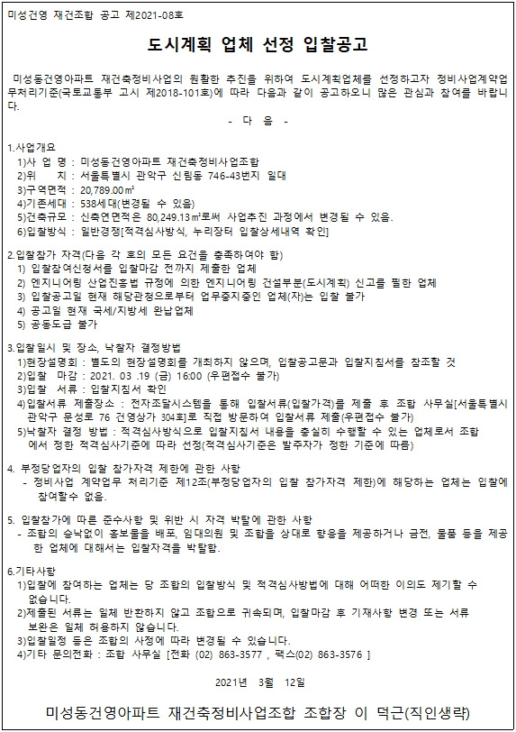 - 유의사항 : 용적률 249.98% 이하로 제시됐으며, 조합 구성·사업시행 인가 상태 등의 확인이 필요.