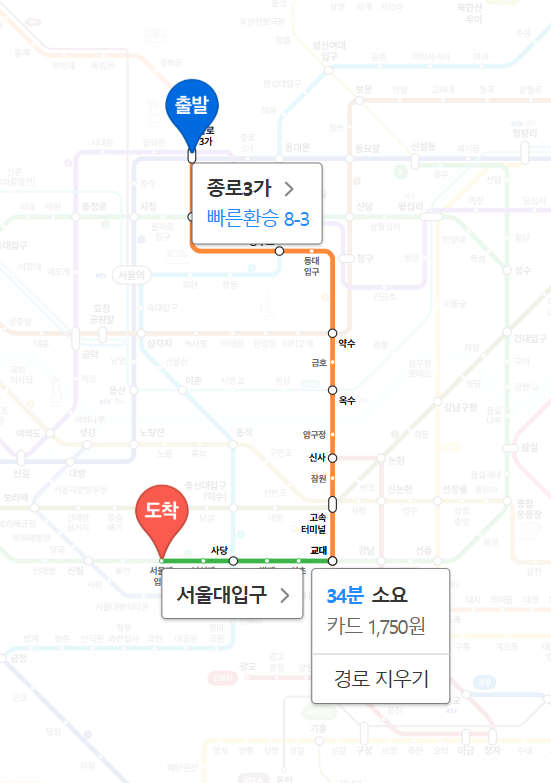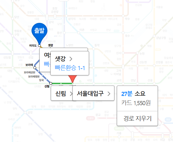 주요3대업무지구인 강남 까지의 소요시간은 약 14분, 여의도 약 27분, 종로3가 약 34분 으로 출퇴근 시 강남·여의도 접근성이 좋은편 입니다.