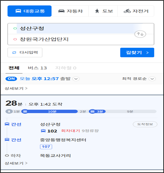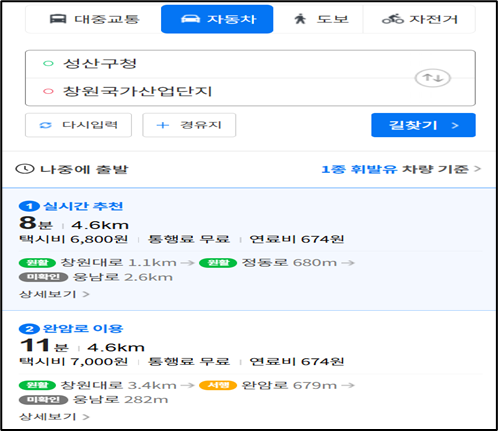 마산회원구에서 주요 직장 업무 지역 인 창원국가산단 까지 자차 이용 시 평균 20~40분, 대중교통(버스 기준) 으로는 약 40~60분이 소요 됩니다.
